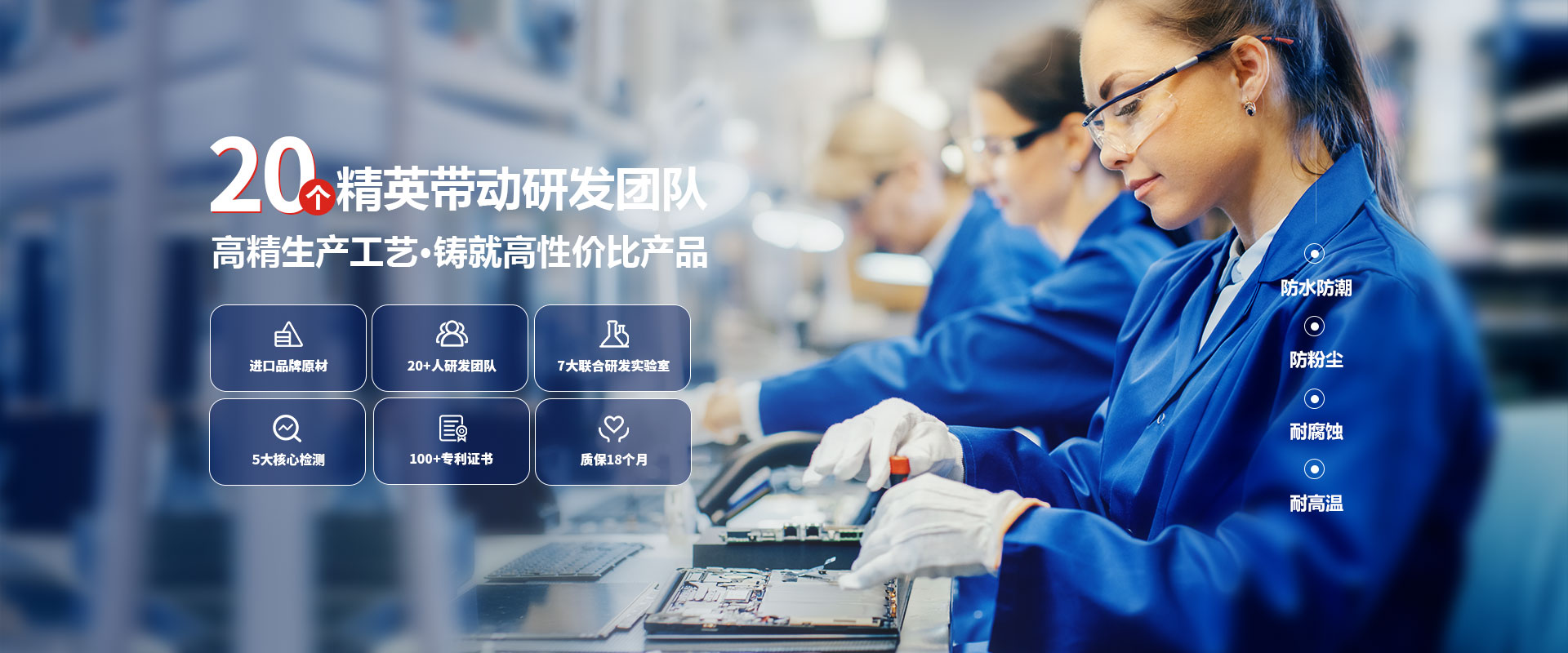 擁有2萬平獨立工業園,配備自動噴涂機、單板測試臺、整機測試臺、三防漆涂覆機等全套半自動、全自動生產設備及手工組裝線,年產量可達30多萬臺。